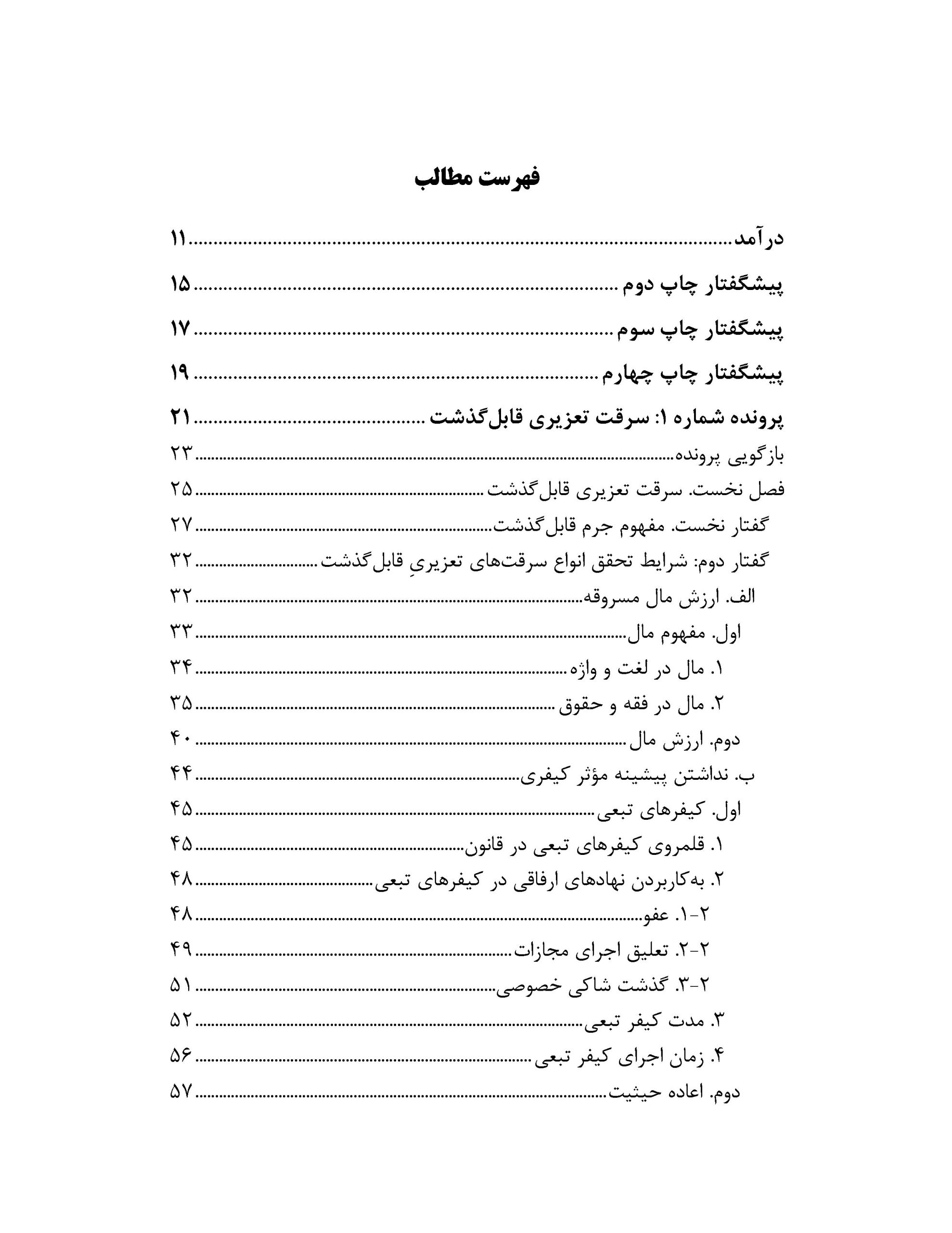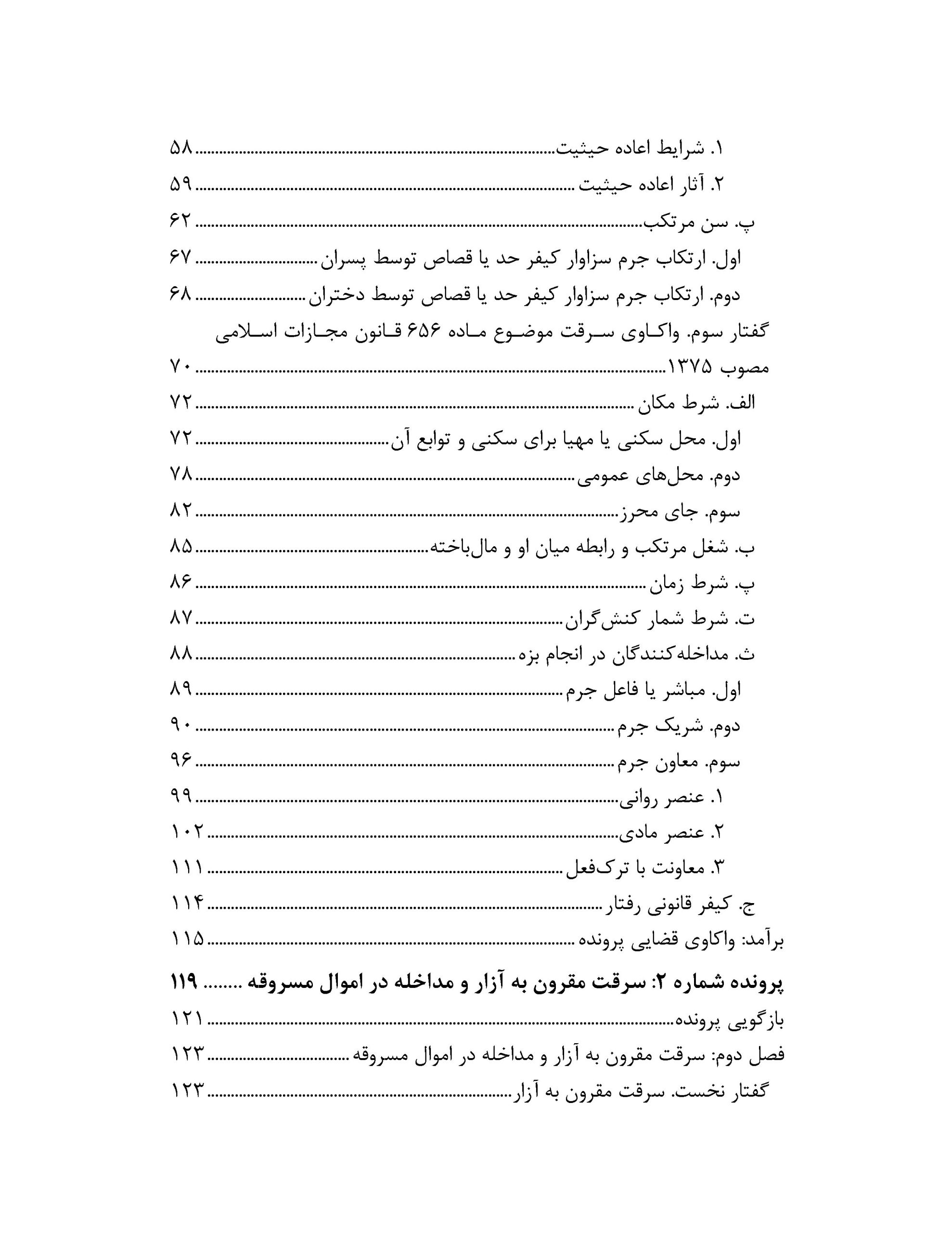 کتاب سرقت به روش مطالعه موردی نگاشته شده است تا بتواند در کنار بررسی مواد مربوط به سرقتهای تعزیری ساده، مشدد، مقرون به آزار و مداخله در اموال مسروقه، با واکاوی قوانین مرتبط و نقل دیدگاههای گوناگون در زمینه مفهوم مال در حقوق کیفری، قلمروی جرمهای قابل گذشت در سرقت تعزیری، شناسایی مرز معاونت در سرقت و بزه فراهم کردن ابزار برای ارتکاب جرم سرقت، چگونگی به کار بردن قواعد تعدد و تکرار جرم در بزه سرقت تعزیری، واگویی مفهوم جرم ناقص و شناسایی مرز هر یک از مفاهیم جرمهای محال با این بزه و …، خوانندگان گرانقدر را در برخورد با چالشهایی که در پروندهها با آنها روبهرو میشوند، یارا باشد. از این رو، با نوشتن پروندههای فرضی در سه فصل جداگانه، چندین موضوع چالشبرانگیز در هر یک از آنها آورده شده است.